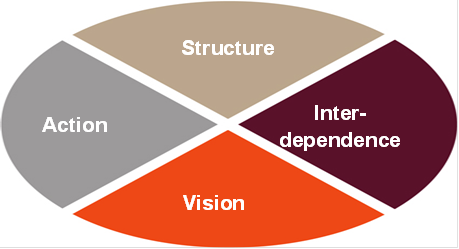 Depending on your preferences, you would tend to exhibit some or other profile. There is no correct profile. Your profile just is. What is important is that your leadership team should exhibit all 4 the elements in a balanced manner. If there are no V’s in your team, your destination will be uncertain, while too much V will lead to exciting bankruptcy. If none of the executive team in your organisation has a preference for Interdependence, you are bound to pick up a few problems in the people side of your organisation. If you only have people in I, then you will go bankrupt but at least you will all be happy about it! No S’s in your team will lead to chaos as there will be no systems and organisation to guide action, while too much S will lead to precise bankruptcy! An absence of A will be an ideal world for the lazy amongst us, while too much A will lead to busy bankruptcy.